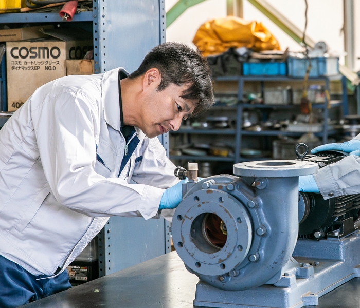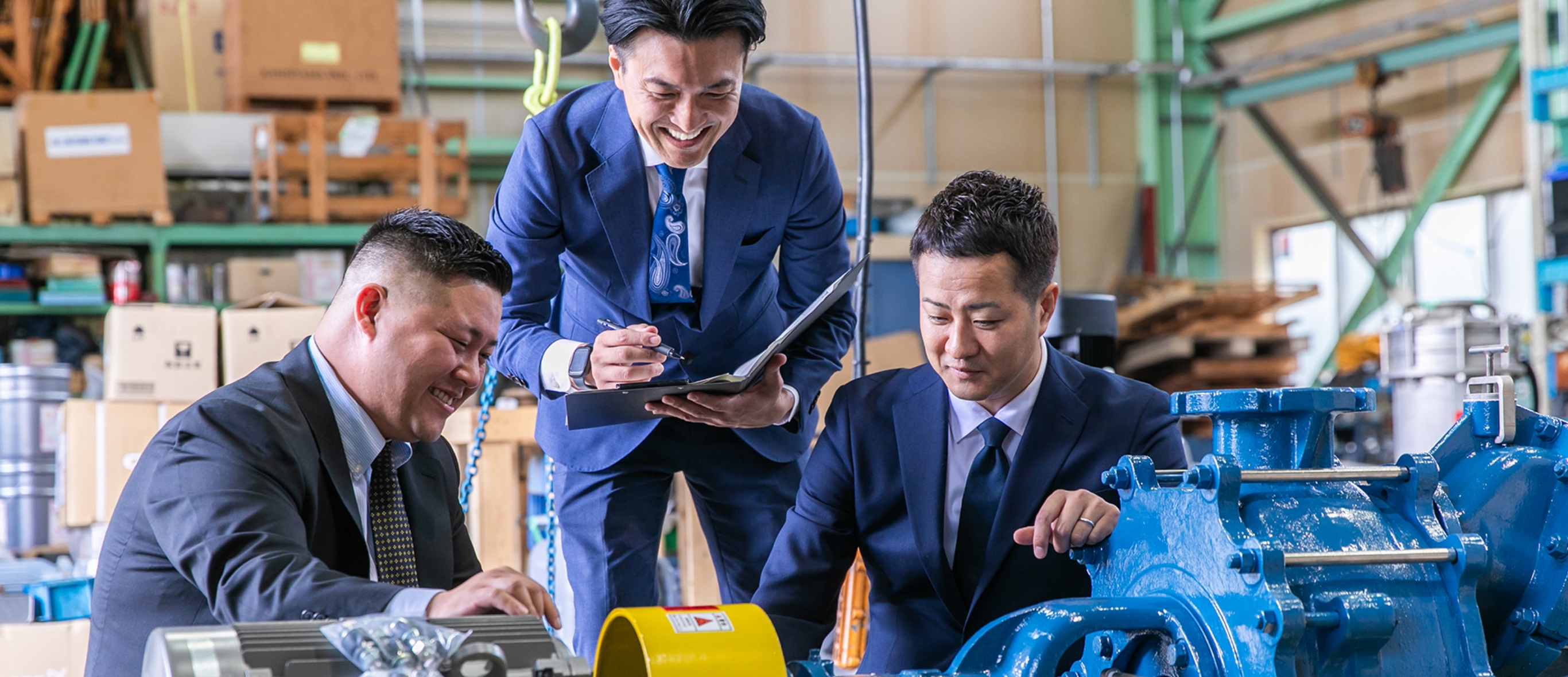 すでに稼働しているポンプの修理やメンテナンスを中心に営業活動を行います。修理に特化したり、販売寄りのスタイルだったり、メンバーがそれぞれの個性を活かして活躍しています。競合が少ないのでお客様から尊重されますし、不具合があったポンプの修理が完了すると、とても喜んでもらえます。